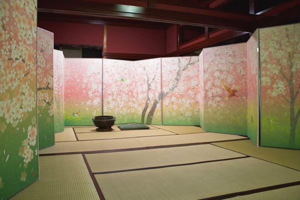 金沢湯涌温泉かなや旅館様 「桜爛漫」「紅葉に鷺」10曲屏風納入