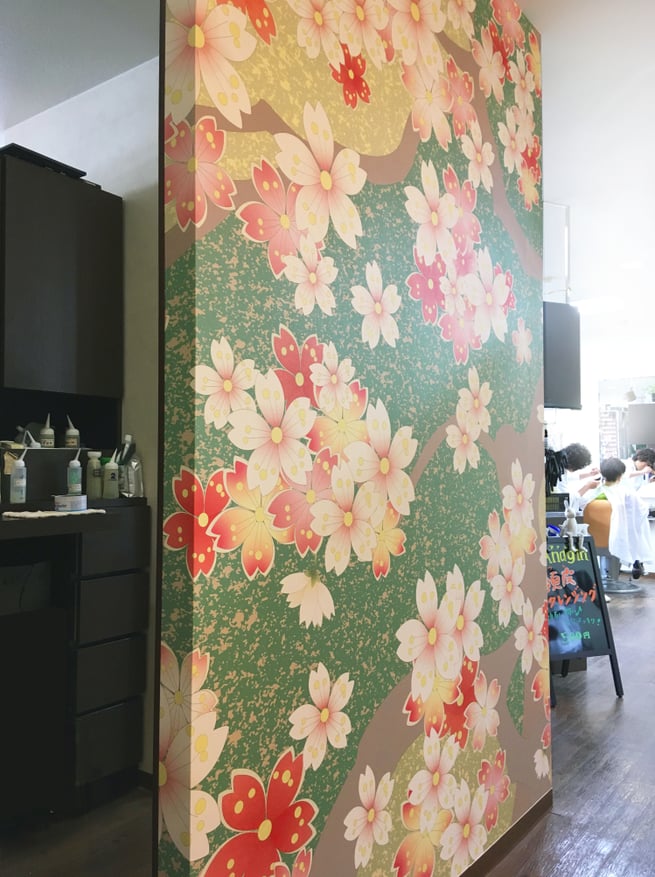 金沢市美容院・Sincerity 様 リニューアル内装壁画 「加賀桜模様」